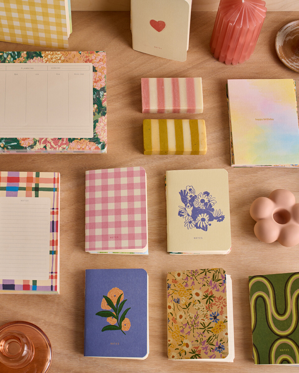 Faites voyager vos idées avec le carnet de poche Swinging Candy, un vibrant motif Vichy rose bonbon, de la marque Season Paper !
