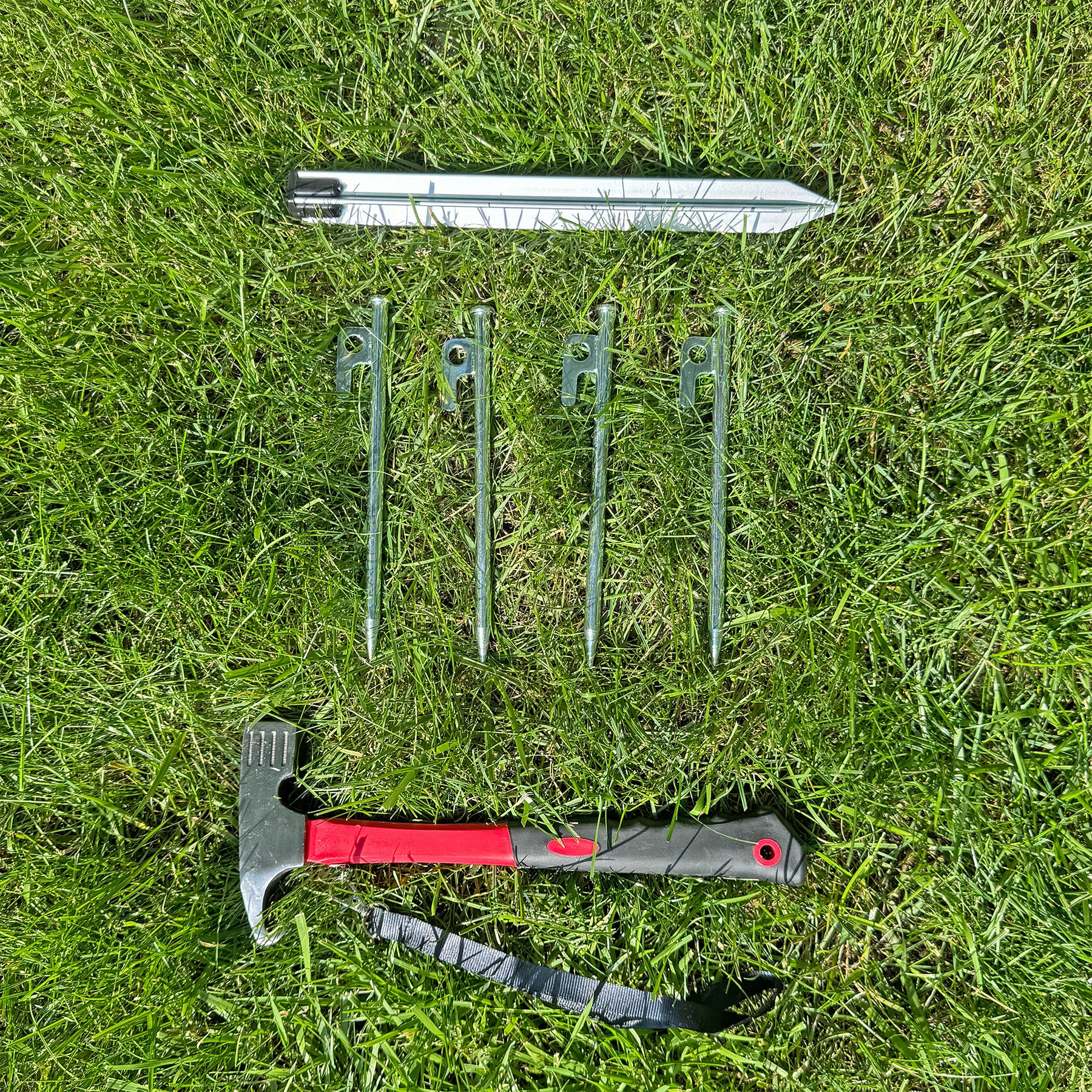 Ce kit comprend désormais des piquets renforcés, un marteau et un ancrage spécialement conçu pour une installation sur surface herbeuse. Il permet d’installer votre CoolCabana en toute stabilité sur pelouse, que ce soit lors d’un événement sportif, d’un pique-nique ou d’une sortie en plein air.