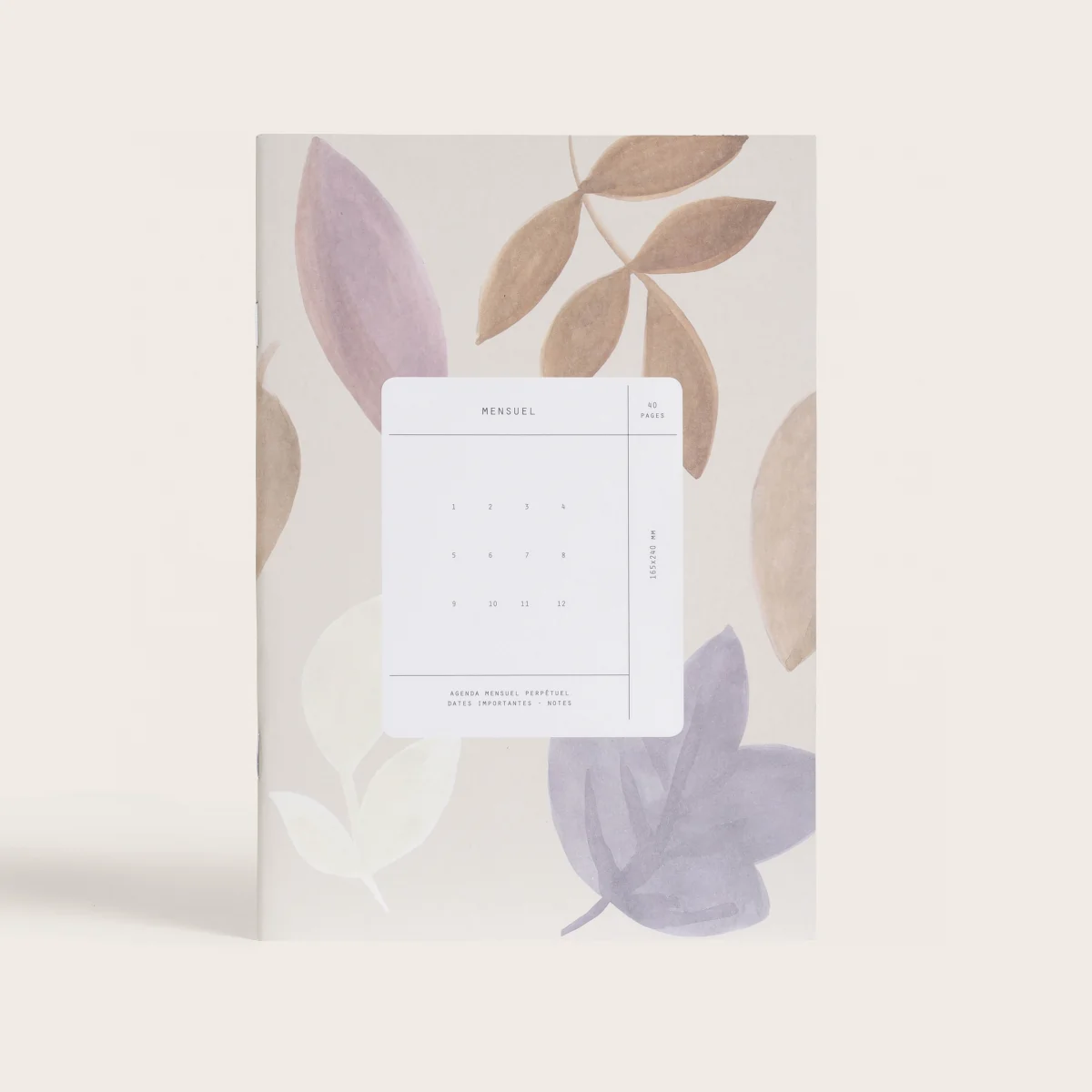 Notre motif Dimanche vous emmène en balade pour ramasser quelques feuilles d’automnes aquarellées aux couleurs douces. Avec son format pratique, bien rangé sur votre bureau ou glissé dans votre sac, notre agenda mensuel perpétuel vous suivra dans tous vos déplacements. Sa mise en page efficace avec une double page par mois et ses pages de Notes et de Dates importantes en font le cahier idéal pour planifier tous vos rendez-vous !