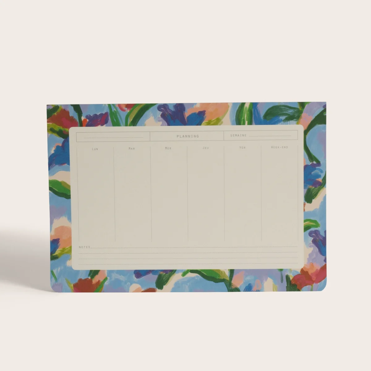 Semaine après semaine, vous aurez toujours un oeil sur votre planning. Avec ses 52 pages détachables, notre semainier vous permettra de vous organiser tout au long de l’année. Avec ses grandes fleurs vibrantes et ruisselantes peintes dans une expression libre, presque abstraite, notre motif Pedro souffle le chaud et le froid entre bleus givrés, verts délavés et rouges incandescents.